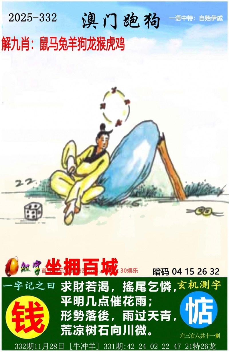 | 332期:单╠猪牛兔鸡╣双╠猴狗鼠龙╣开:龙26准 |